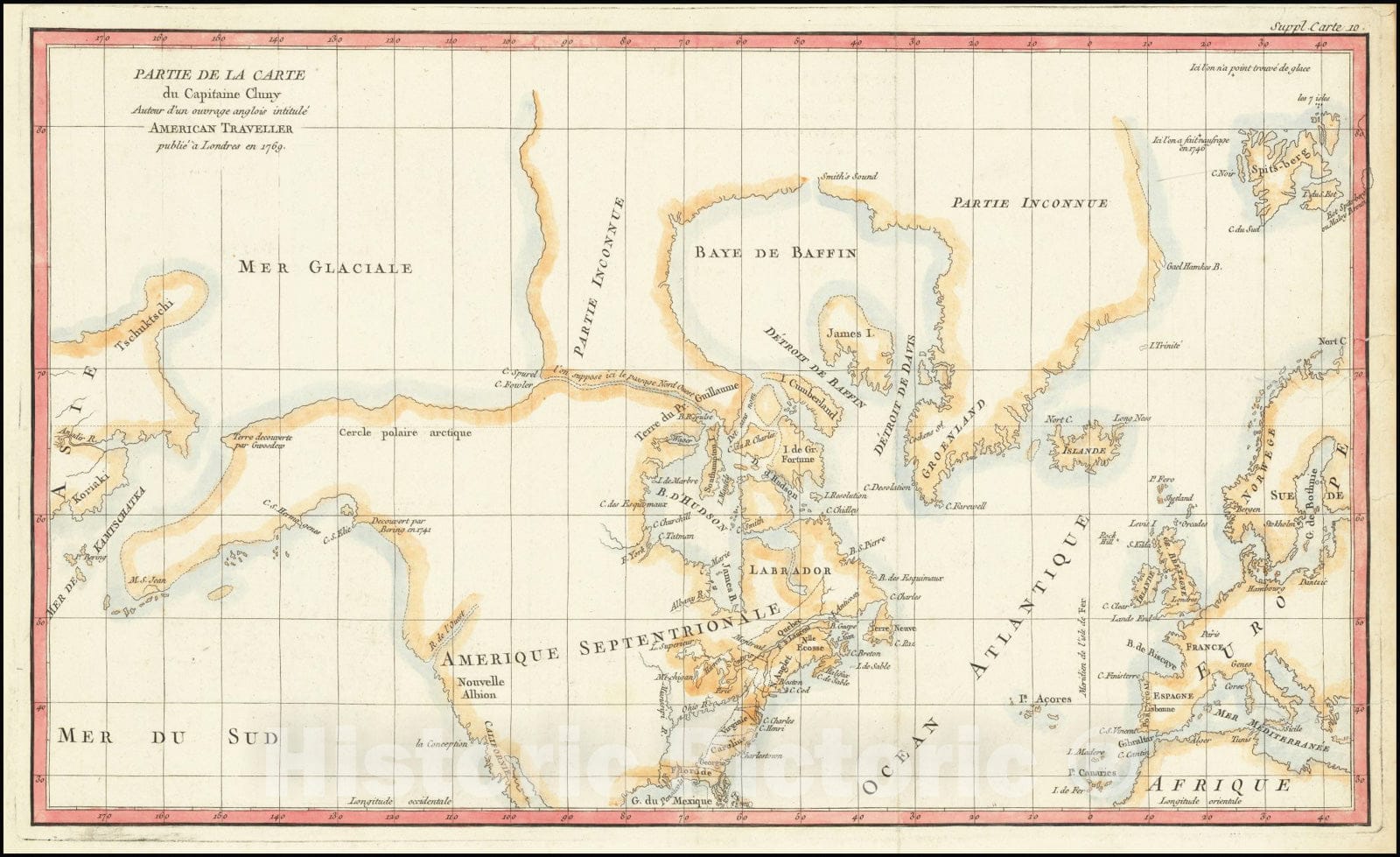 Historic Map : Partie De La Carte du Capitaine Cluny Autur d'un ouvrage anglois intitule American Traveller, 1769, 1772, Vintage Wall Art