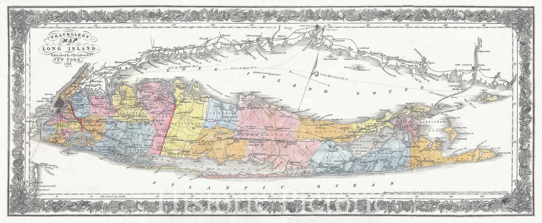 Historic Map : Long Island, New York, Colton Traveller's, 1857, Vintage Wall Art