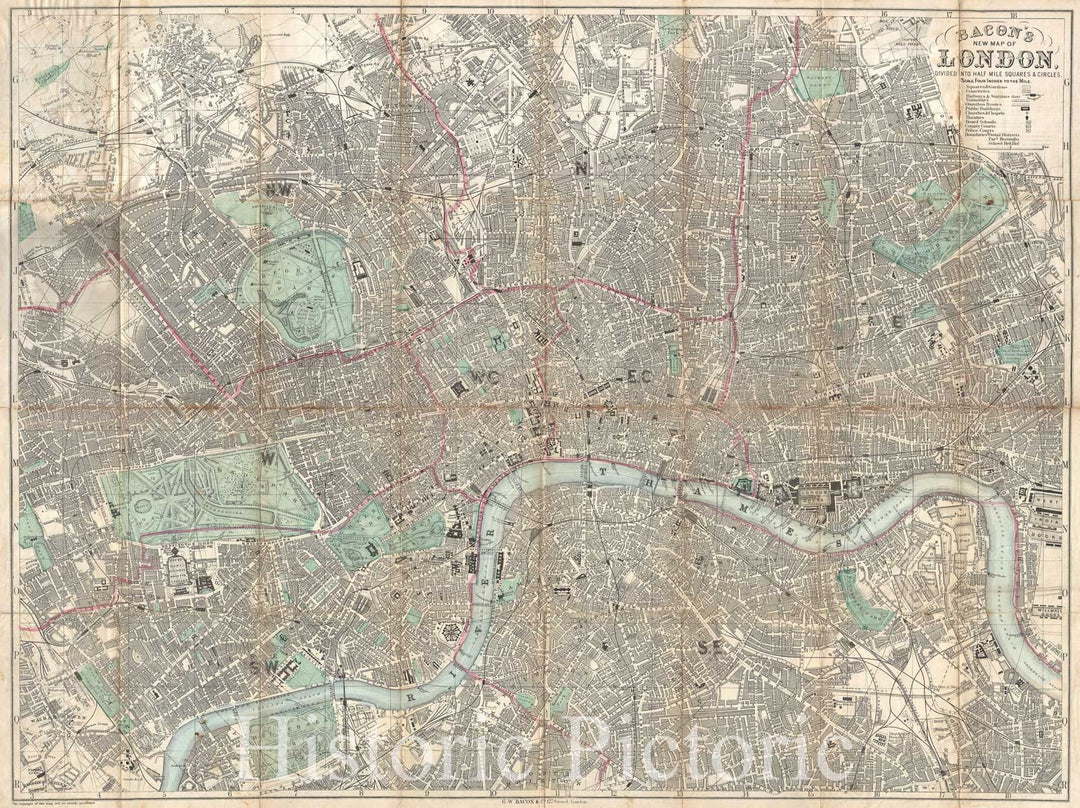 Historic Map : Bacon Traveler's Pocket Map of London, England, 1890, Vintage Wall Art