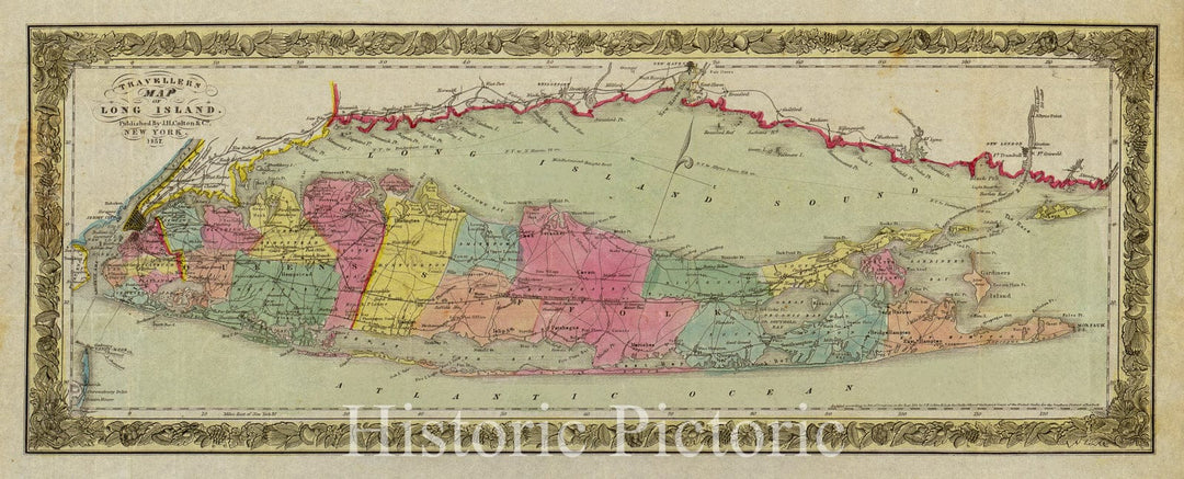 Historic 1859 Map - J. Sage & Sons New & Reliable Rail Road map, Travellers Edition, Eastern.