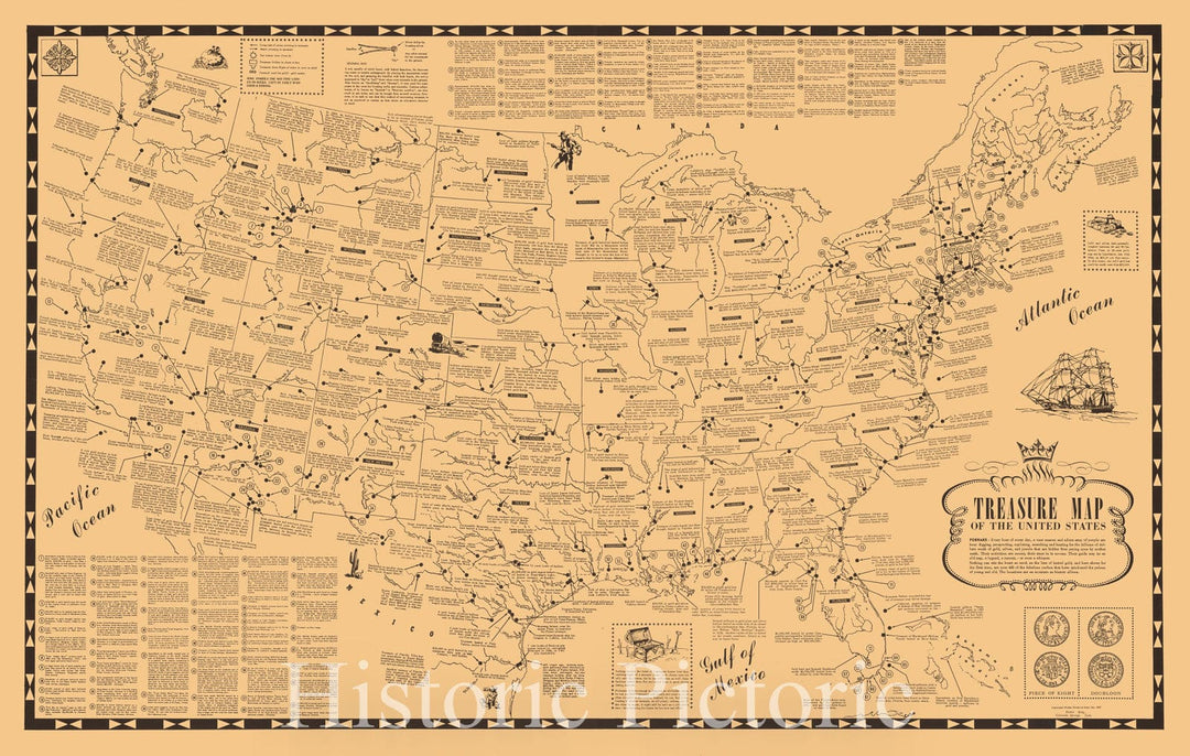 Historic Map - Treasure Map of the United States, 1957, Walter Drake & Sons - Vintage Wall Art