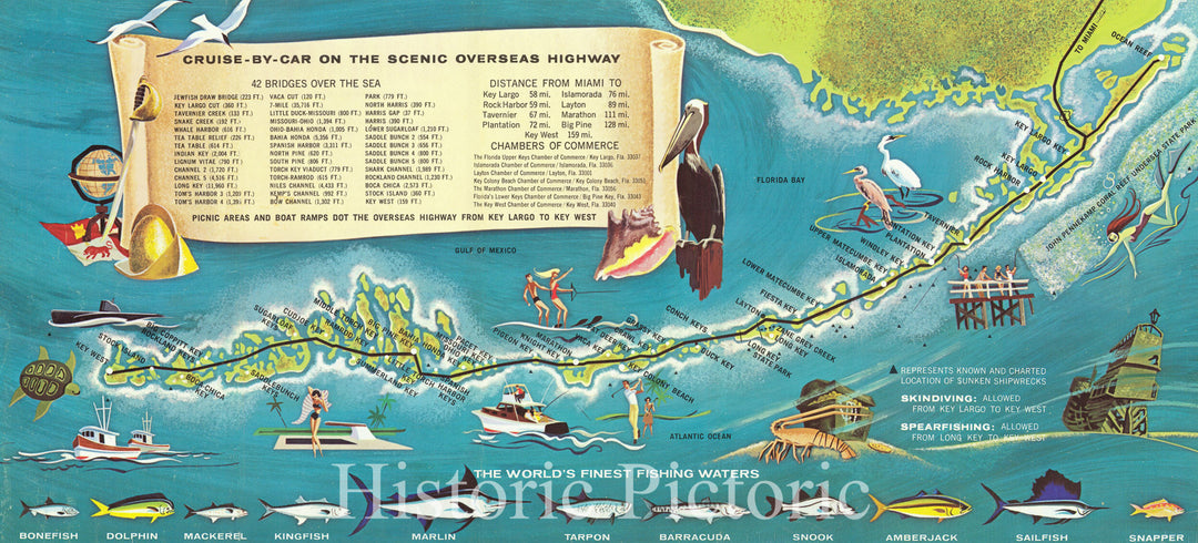 Historic Map : Your treasure map, to the sea Florida Keys and Key West, Cruise-By-Care On The Scenic Overseas Highway, c1960, Vintage Wall Art