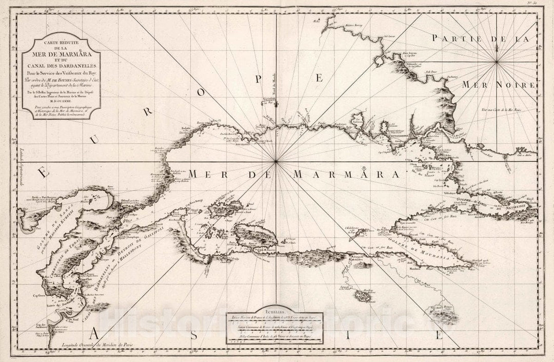Historic Map : Sea of Marmara (Turkey) Carte Reduite de la Mer de Marmara et du Canal des Dardanelles, 1772 Chart , Vintage Wall Art