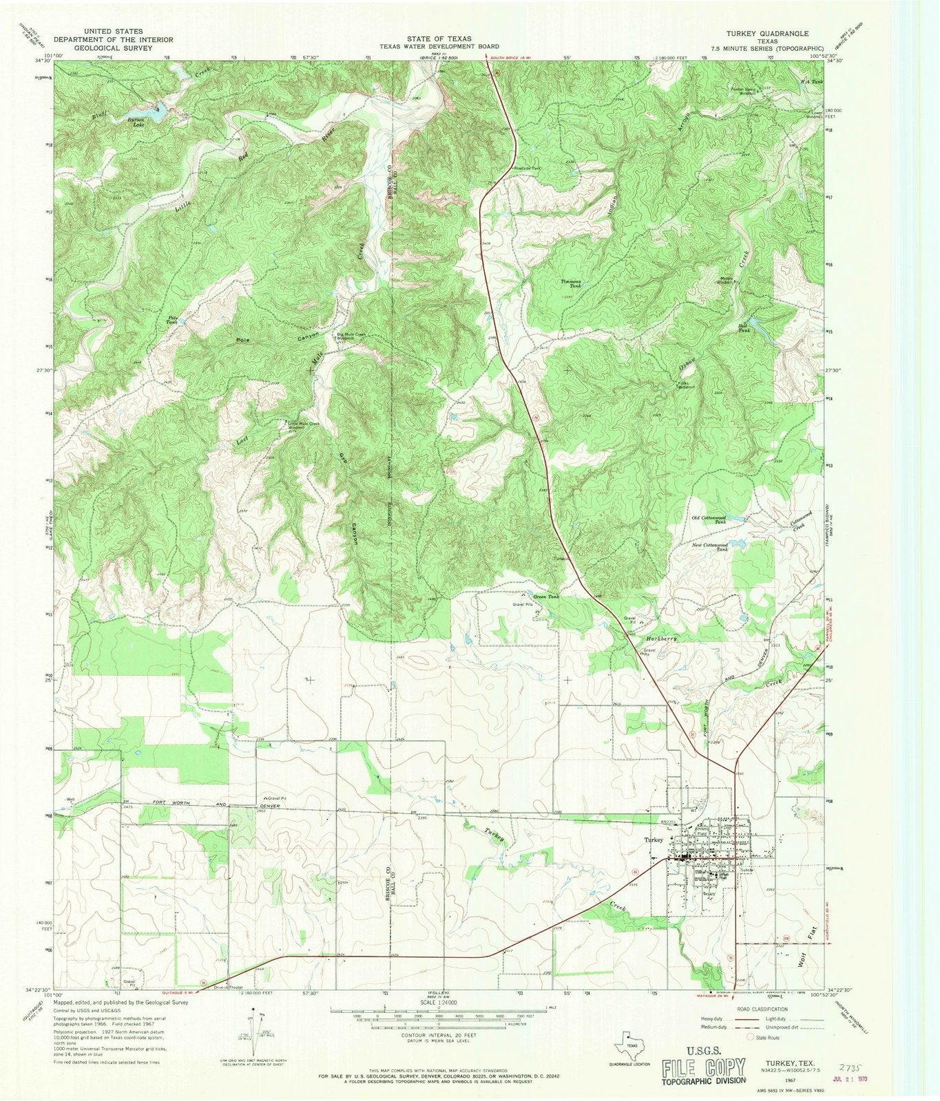 1967 Turkey, TX - Texas - USGS Topographic Map