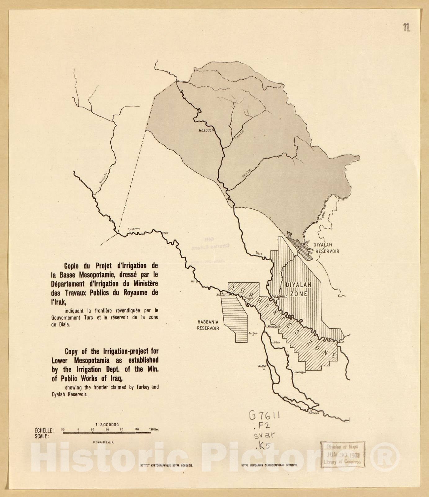 Historic 1924 Map - Border Maps of Iran & Turkey - Sheet 11: Copy of The Irrigation Project for Lower Mesopotamia.