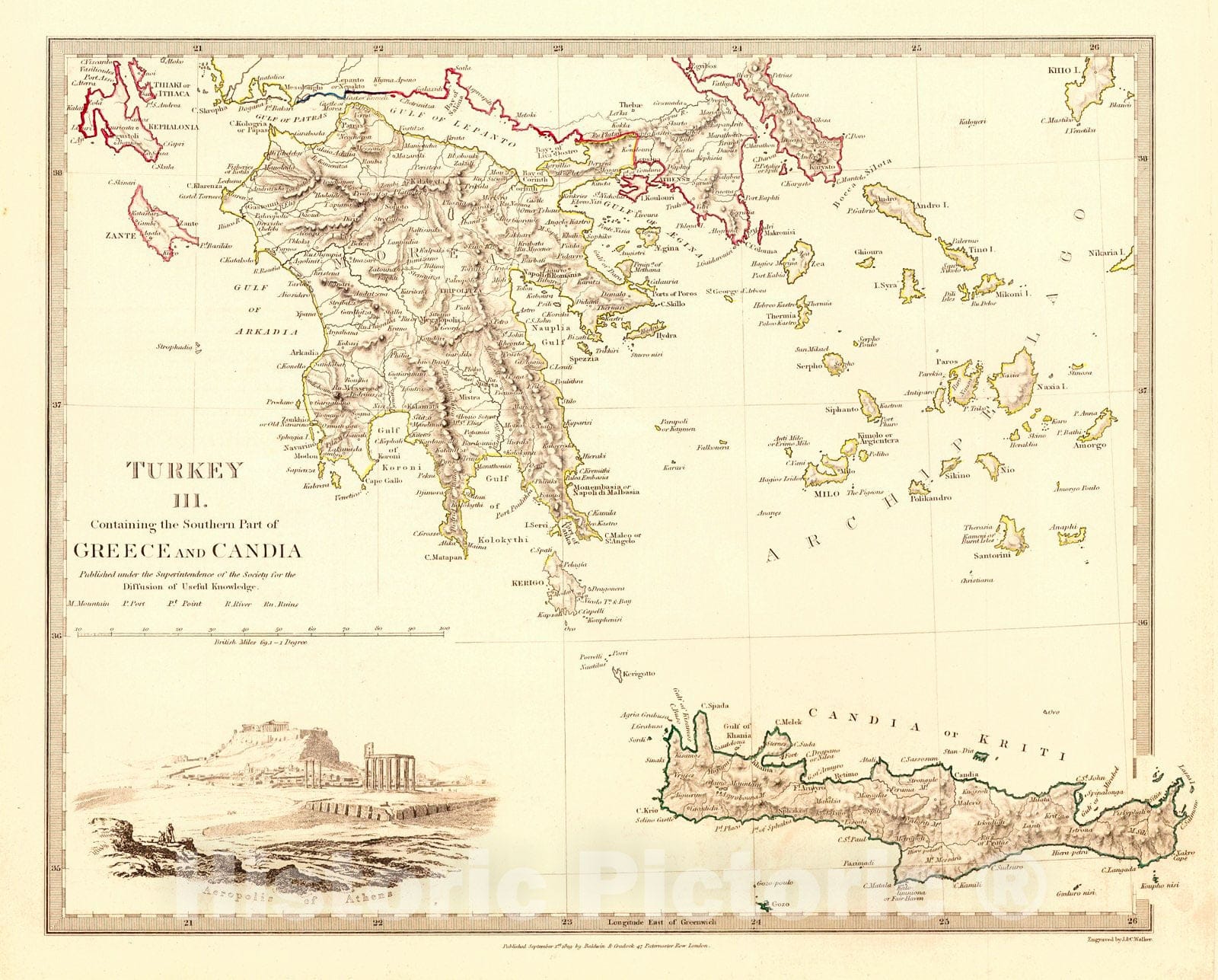 Vintage Map | 1830 Turkey III Containing the Southern Part of Greece and Candia | Society for the Diffussion of Useful Knowledge