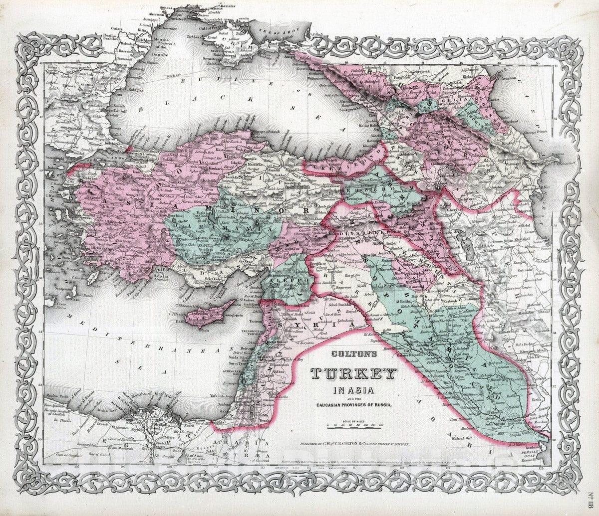 Historic Map : 1869 Turkey in Asia and the Caucasian Provinces of Russia. - Vintage Wall Art