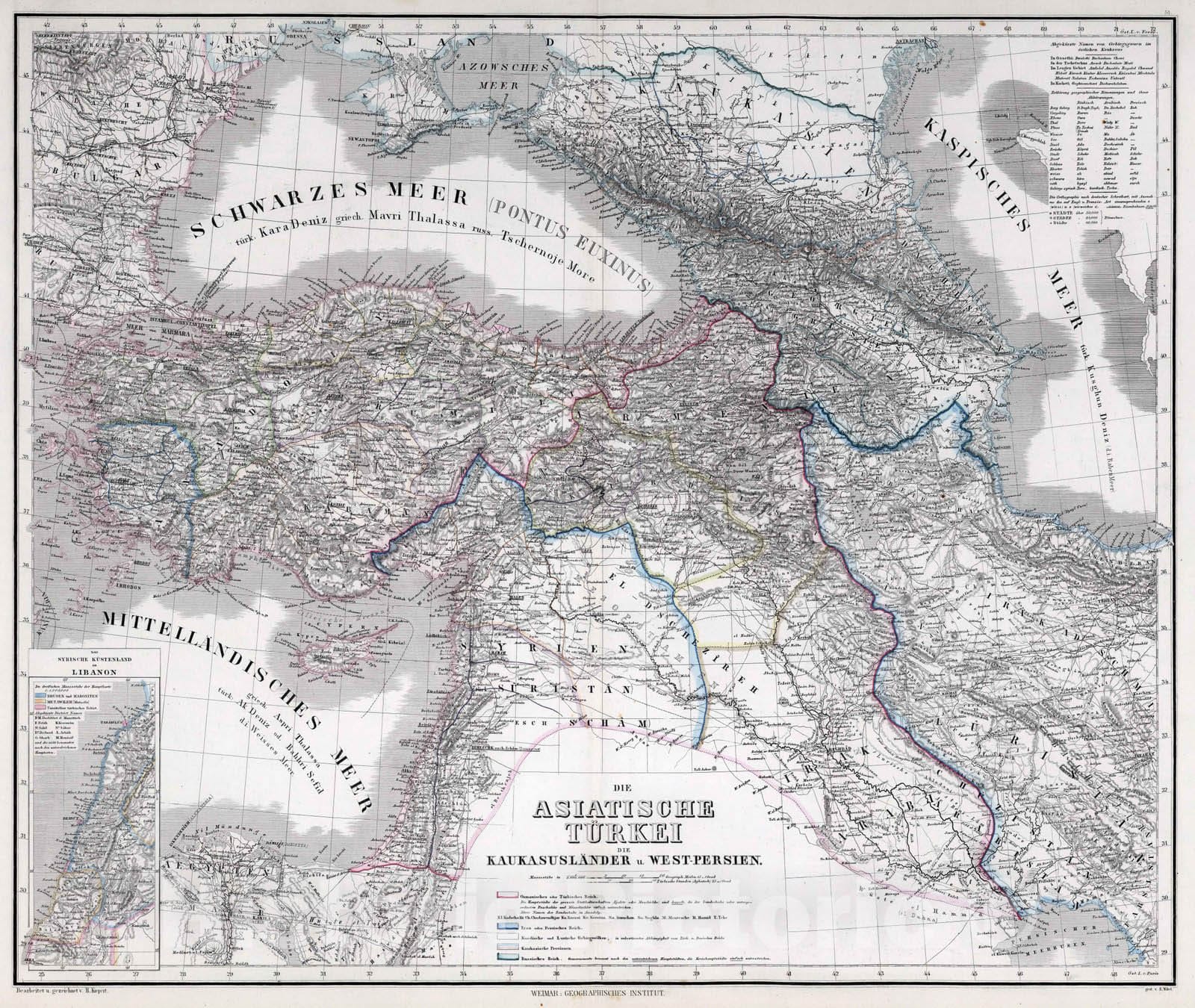 1875 Turkey in Asia, Syria, Lebanon, Iraq, Iran, Azerbaijan, Armenia, Georgia.