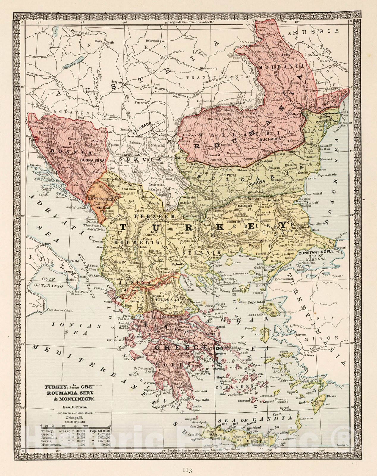 1883 Turkey in Europe, Greece, Roumania, Servia & Montenegro.