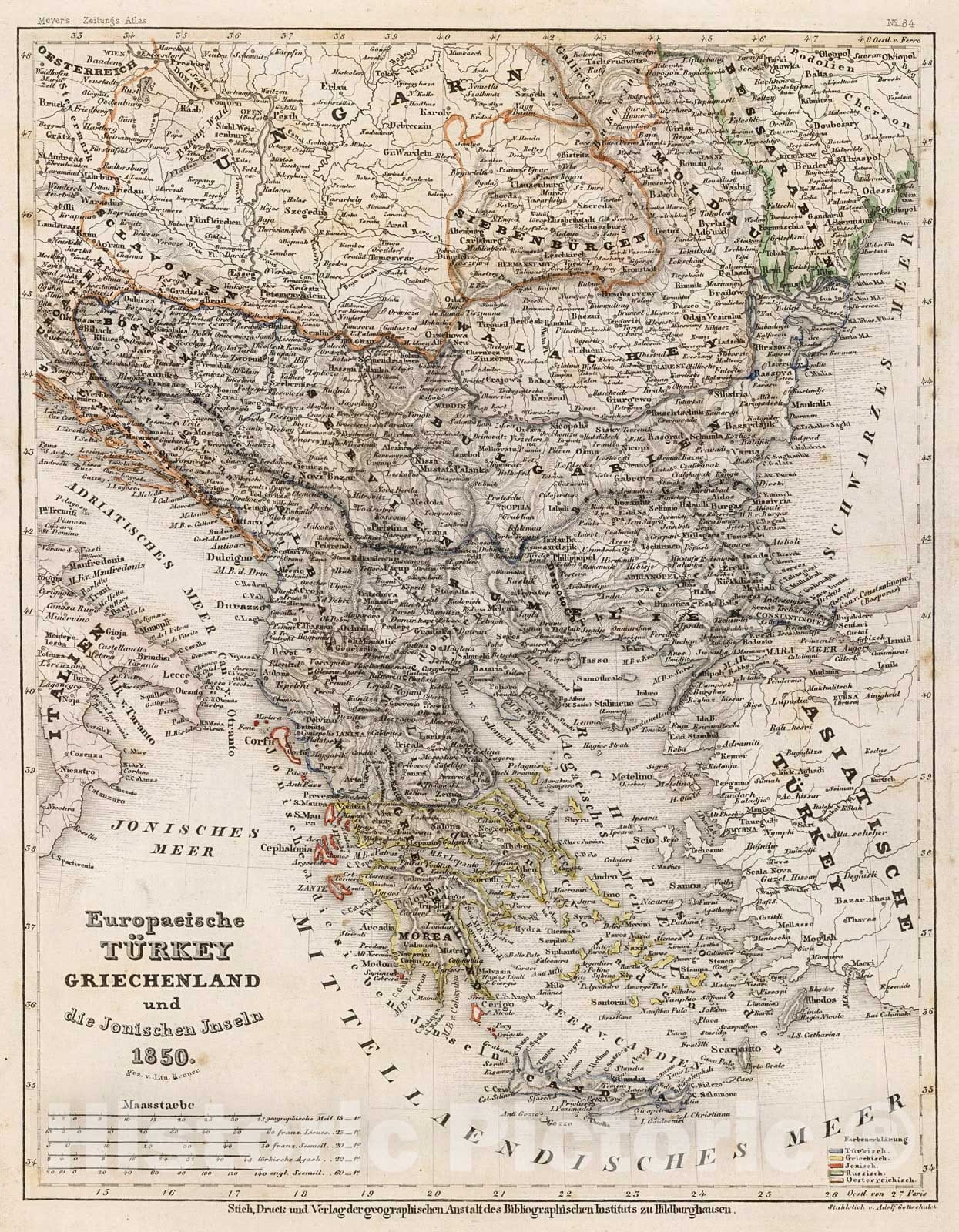 Historic Map : Europaeische Turkey, Griechenland und die Ionischen Inseln 1850, 1852, Vintage Wall Decor