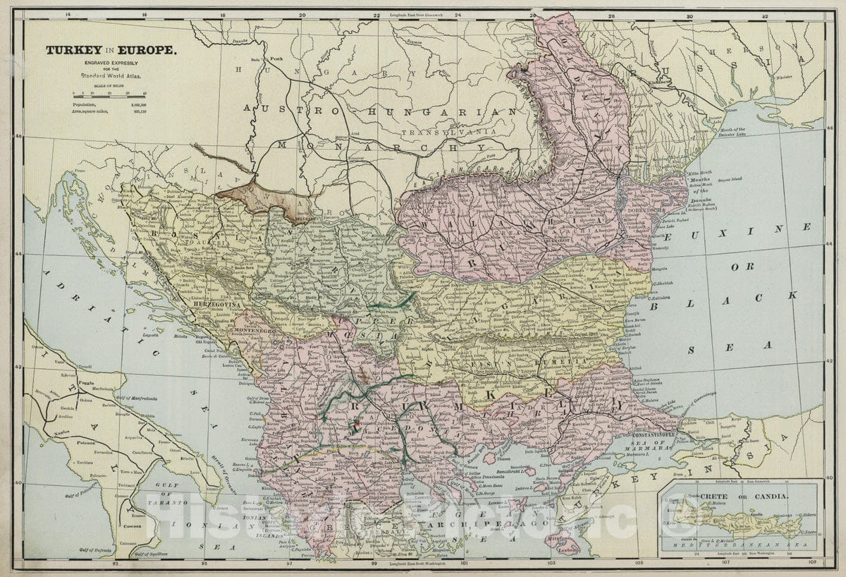 Greece; Macedonia; Albania; Turkey, 1875 Grece Ancienne, Macedoine, Thrace. , Vintage Wall Art