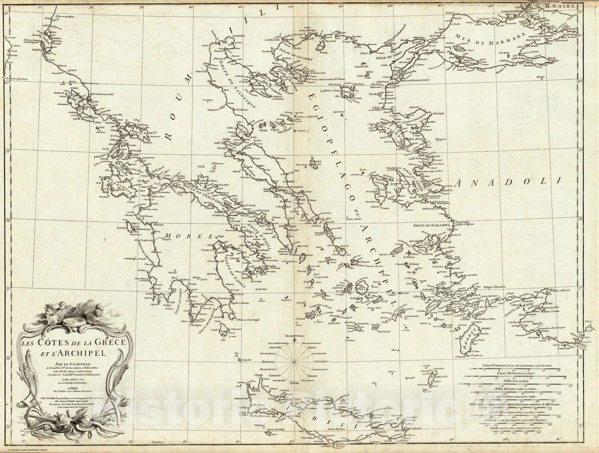 Historic Map : Greece; Turkey, 1756 Les Cotes de la Grece et l'Archipel. , Vintage Wall Art