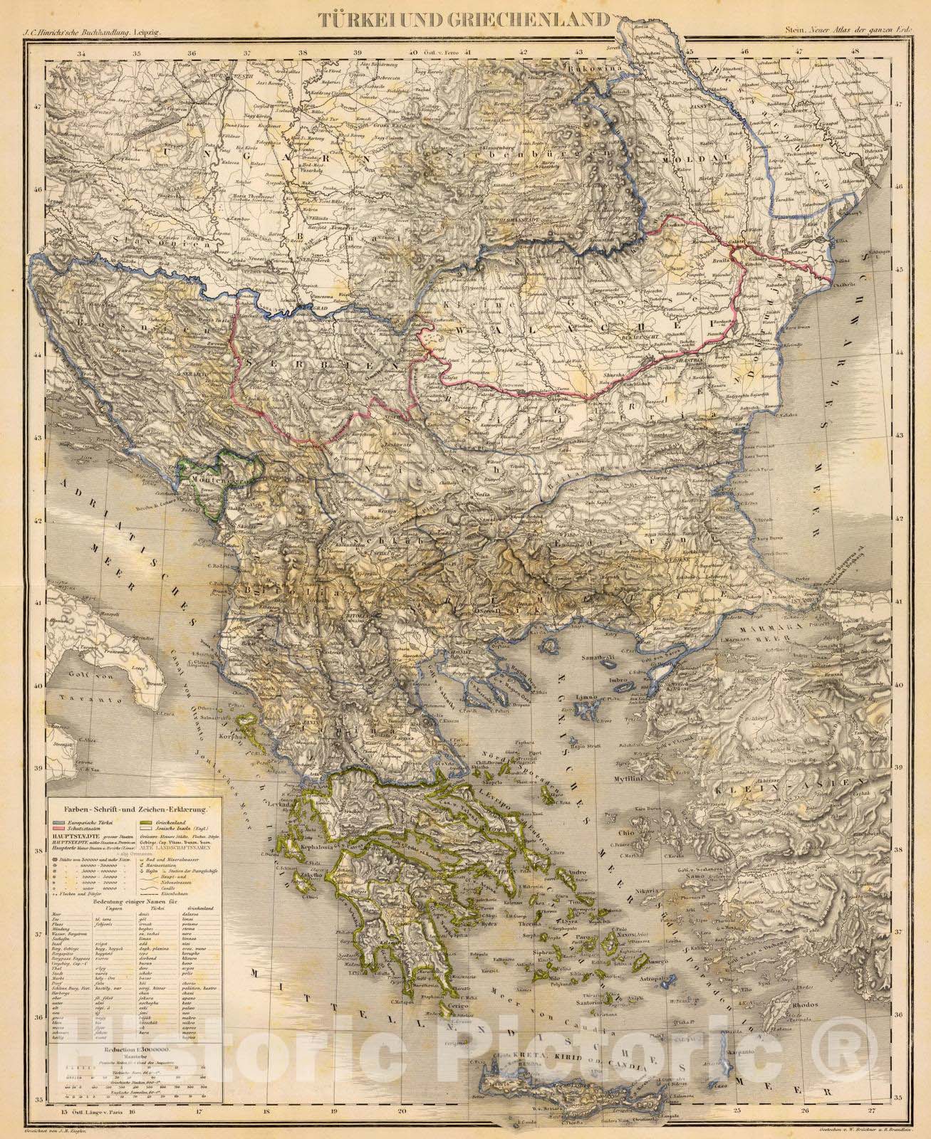 Historic Map : Greece; Turkey, Balkan Peninsula 1865 Turkei u. Griechenland. , Vintage Wall Art