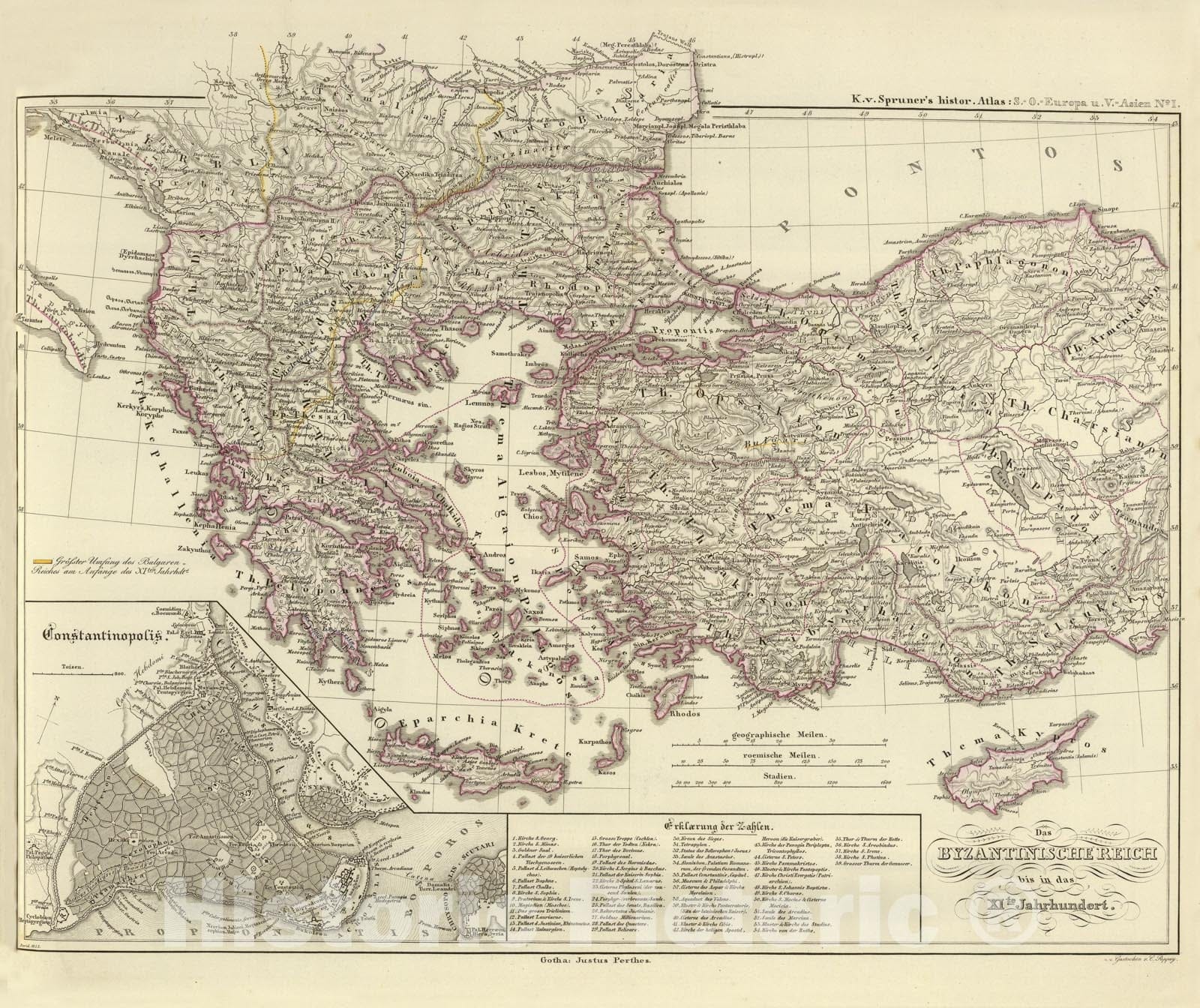 Historic Map : Greece; Turkey , Istanbul (Turkey), Balkan Peninsula 1855 Das Byzantinische Reich bis in das XIte. Jahrhundert. , Vintage Wall Art