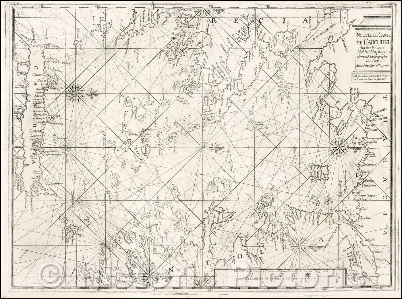 • .Historic Map - Nouvelle Carte De L'Archipel Fait par les Sieurs Michelot Pilote :: Chart of the Greek Archipelago, coast of Turkey, 1718 - Vintage Wall Art