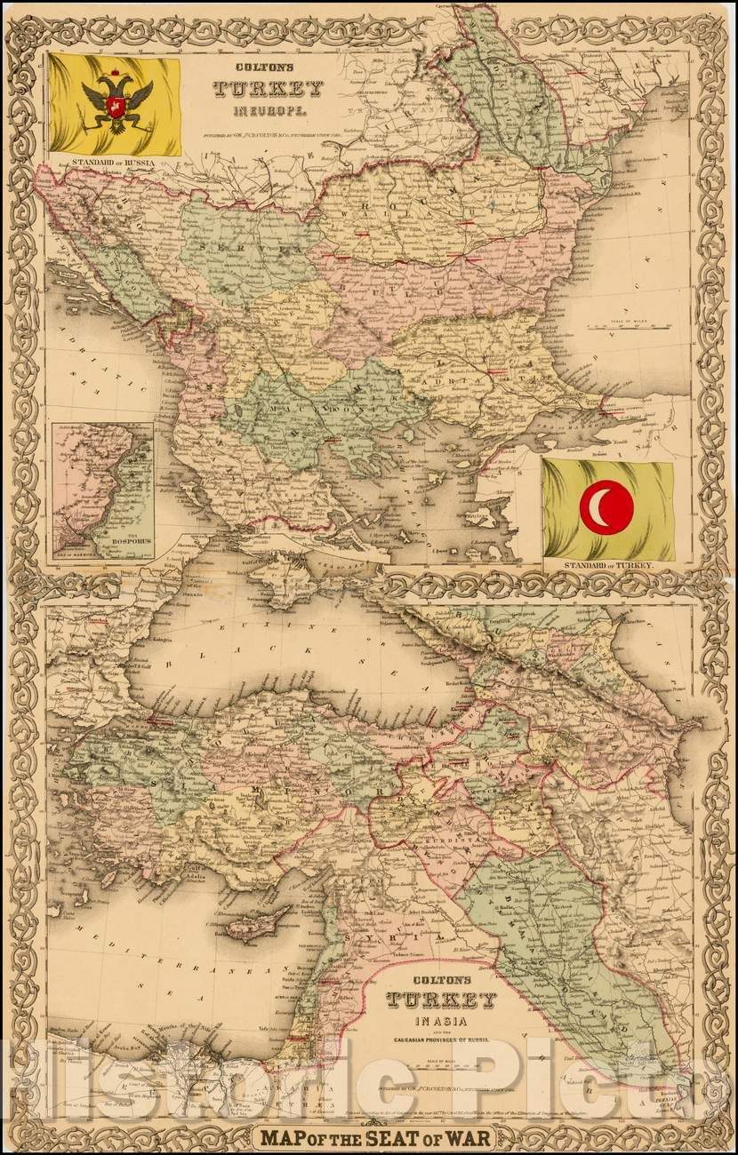 Historic Map - Map of the Seat of War - Colton's Turkey In Europe (and) Colton's Turkey in Asia and the Caucasian Provinces of Russia, 1877 - Vintage Wall Art