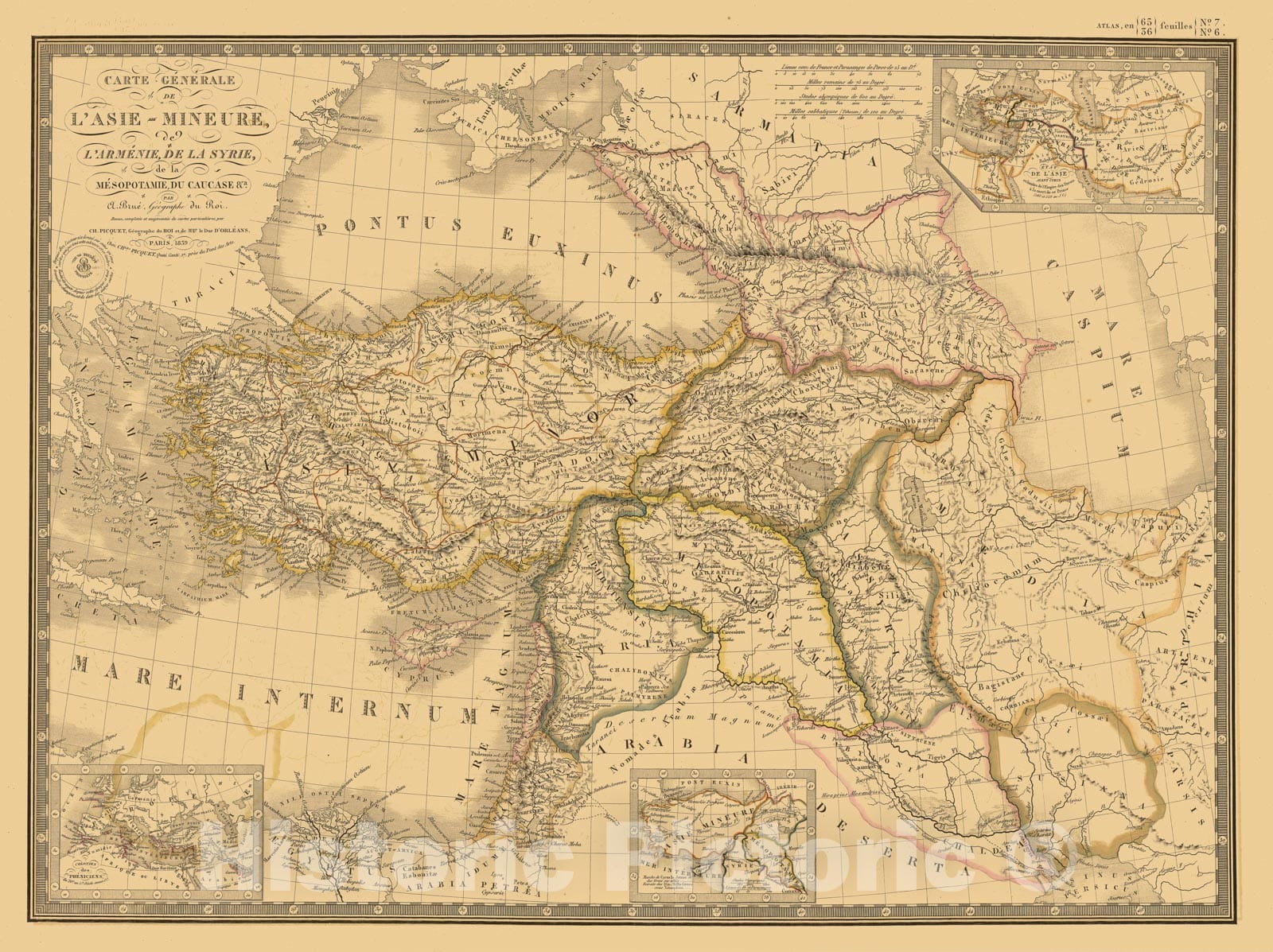 Historic Map : Syria; Turkey, Middle East 1839 Asie-Mineure, Armenie, Syrie, Mesopotamie, Caucase. , Vintage Wall Art