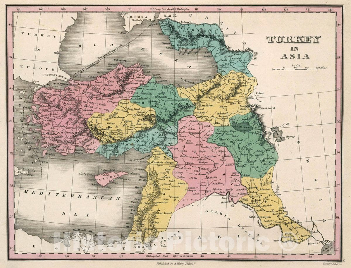 Historic Map : Turkey in Asia. Young & Delleker Sc. Published by A. Finley, Philada. A New General Atlas Comprising a Complete Set of Maps, 1827 Atlas - Vintage Wall Art