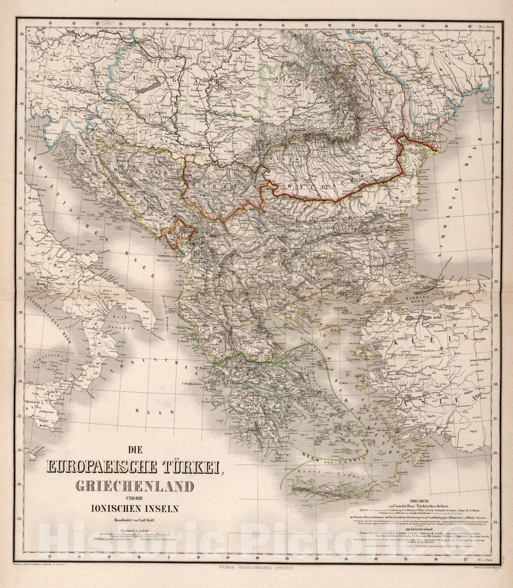 Historic Map : Turkey, Balkan Peninsula Das Europaeische Turkei, Griechenland und die Ionischen Inslen, 1866 Atlas , Vintage Wall Art