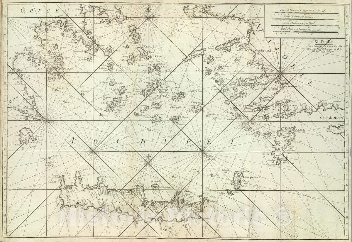 Historic Map : Turkey; Crete, Crete 1764 Carte De La Mer Mediterranee. XI. , Vintage Wall Art