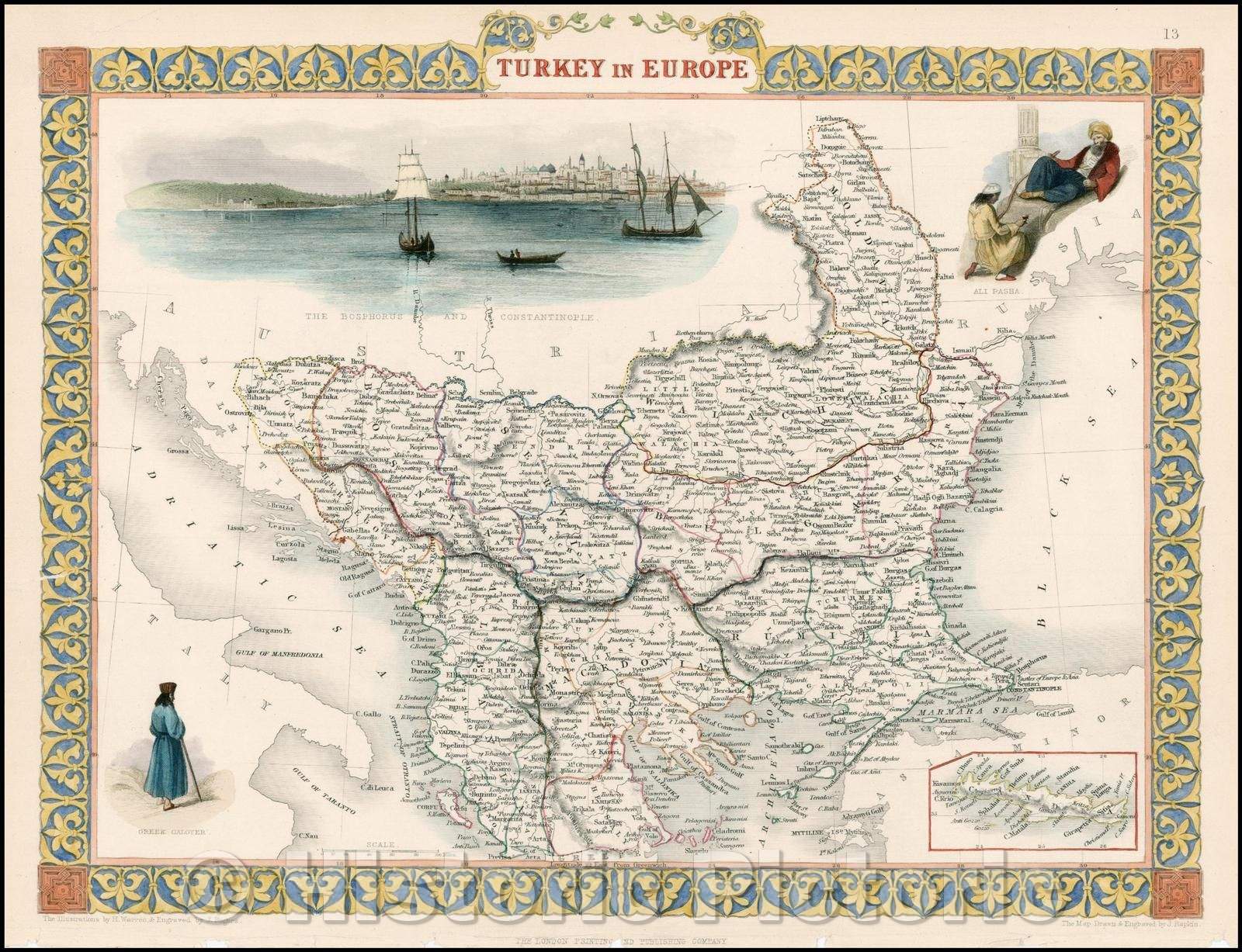 • .Historic Map - Turkey in Europe, 1851, John Tallis v1