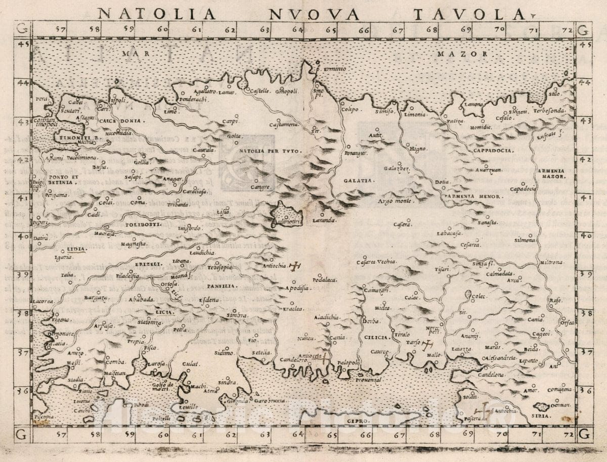 Turkey, Natolia Nvova Tavola. Natalia, Ventesimaterza tavola nvova, 1561 Atlas , Vintage Wall Art