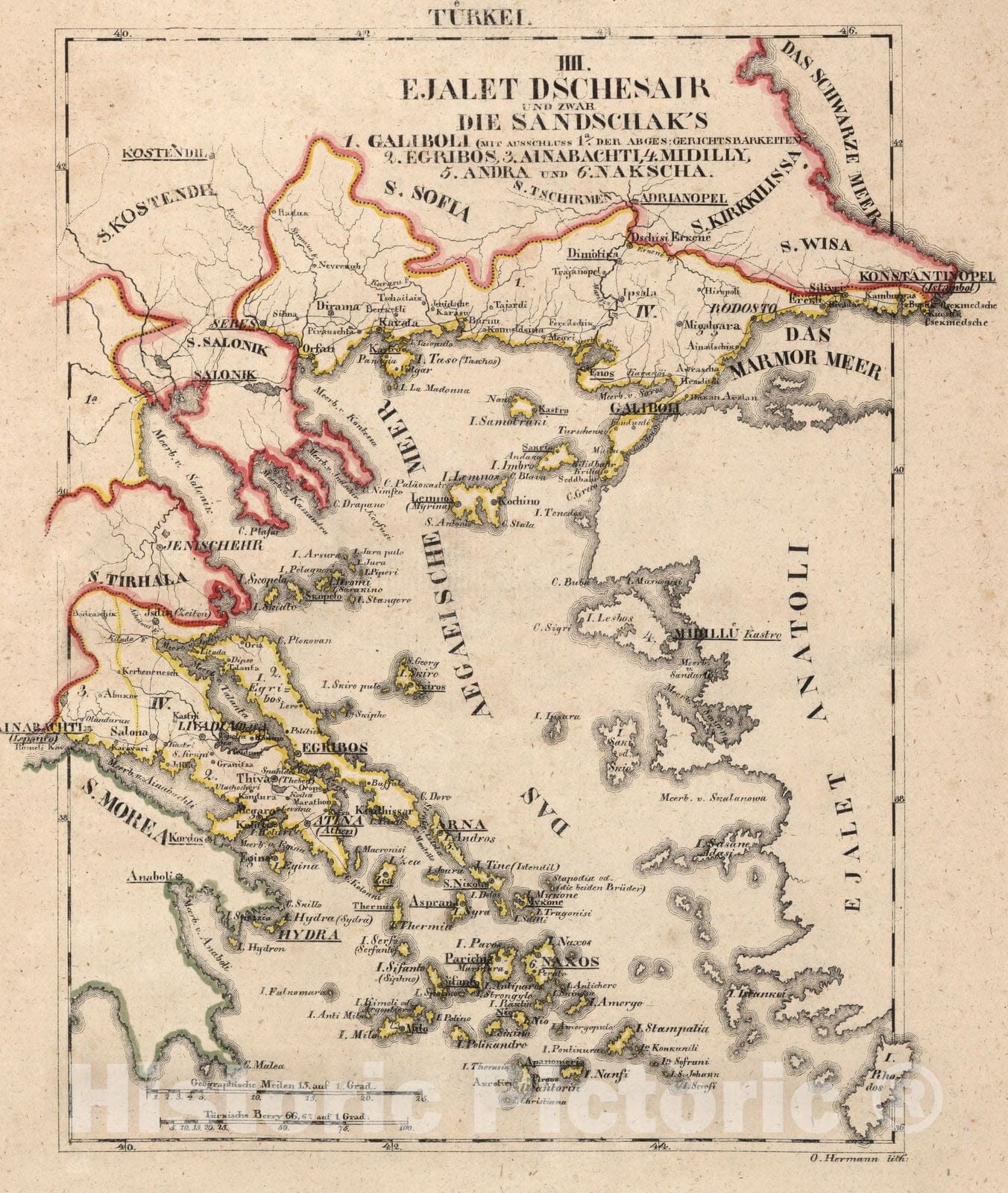 Historic Map : Turkey, Ottoman Empire V.1:1-5: II: Turkei. IIII. Ejalet Dschesair 1825 , Vintage Wall Art