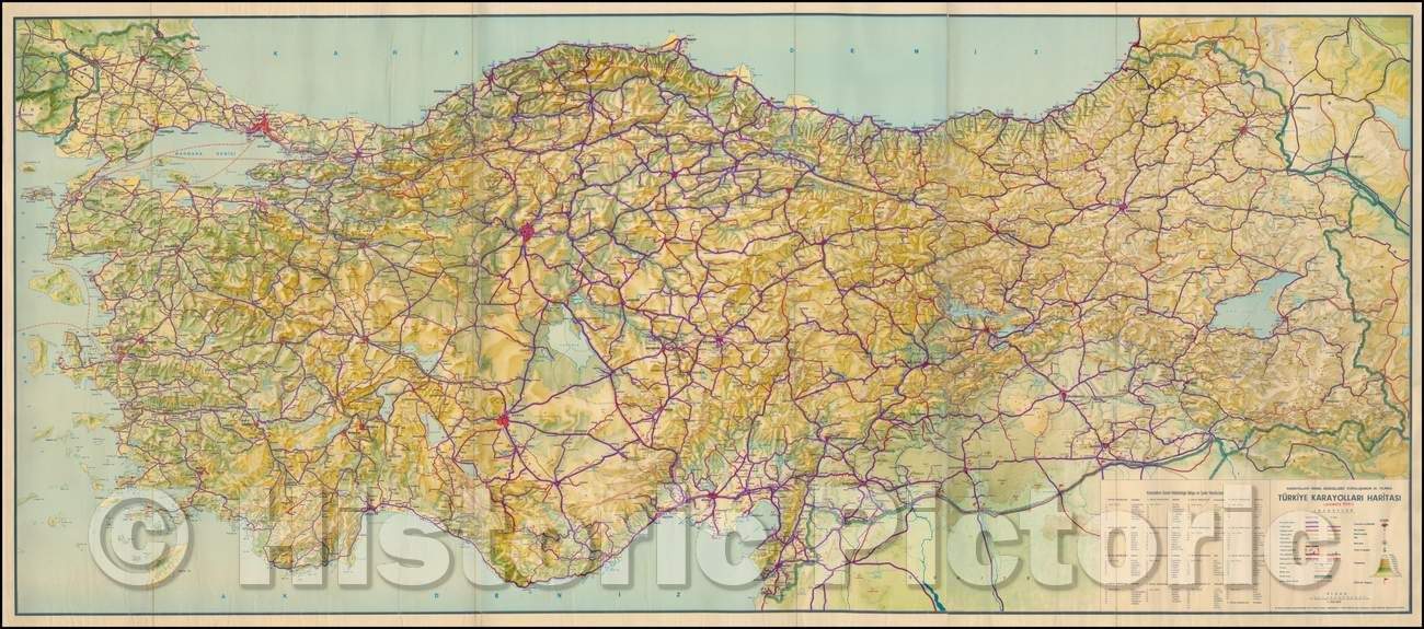 Historic Map - Turkiye Karayollari Haritasi/Turkey Road Map, 1950, Anonymous - Vintage Wall Art