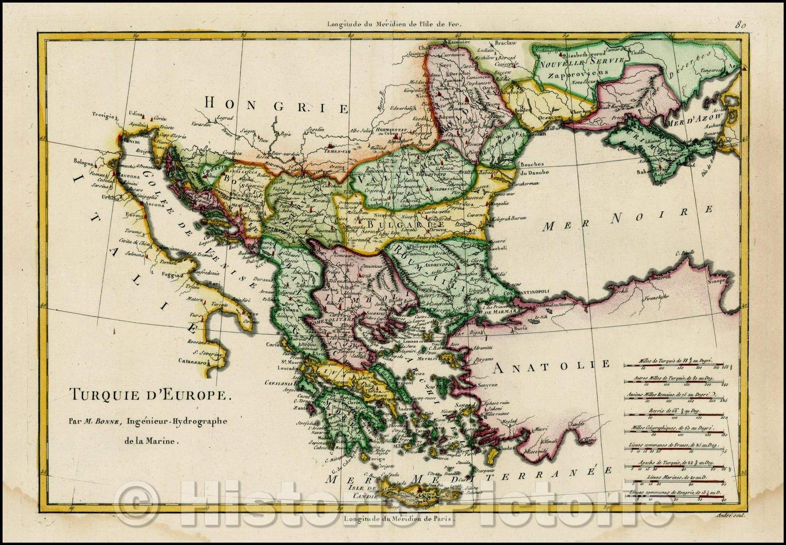 Historic Map - Turquie D'Europe/Turkey From Europe, 1780, Rigobert Bonne - Vintage Wall Art