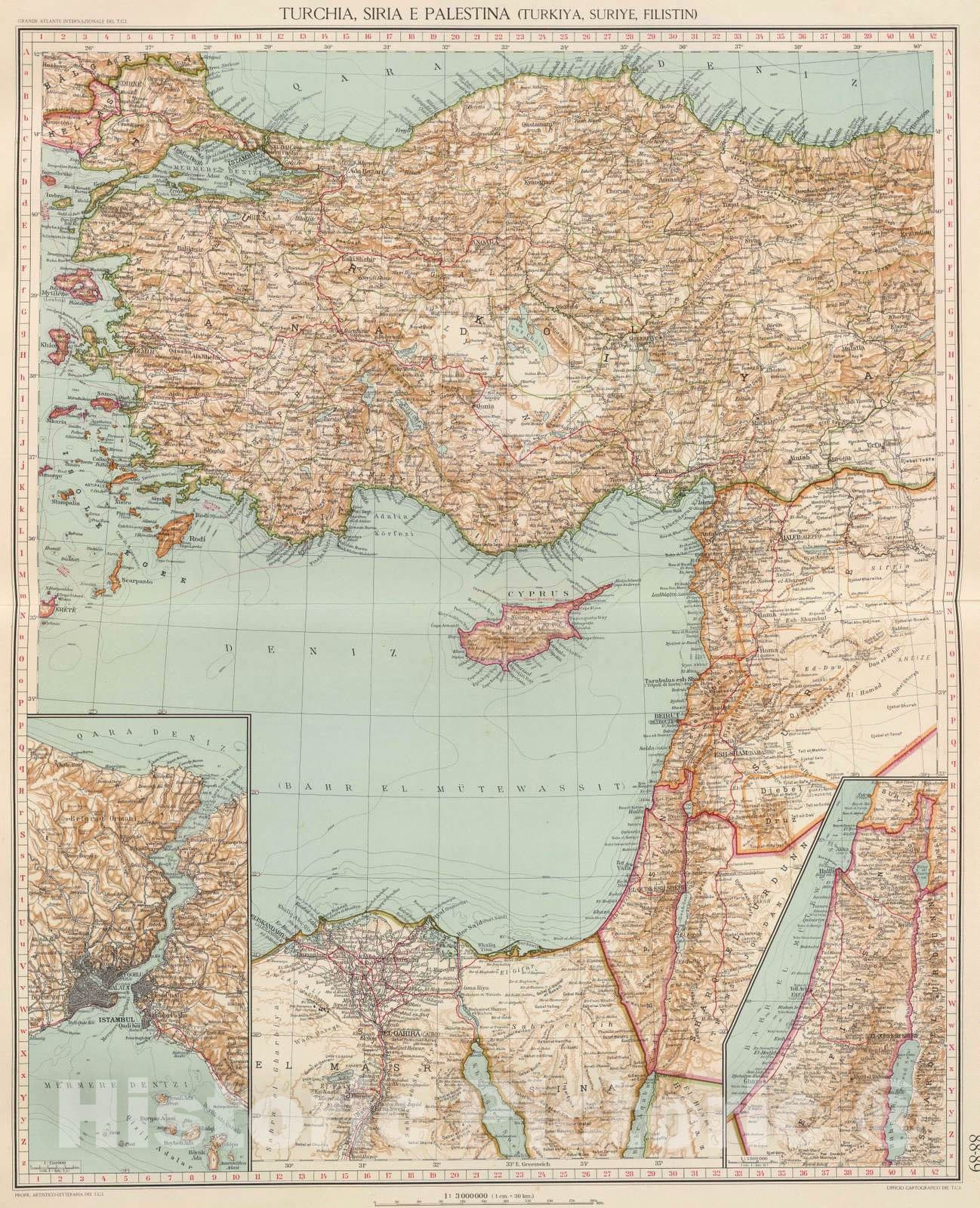 Historic Wall Map : Syria; Turkey, Istanbul Region (Turkey) 1929 88-89. Turchia, Siria, Palestina. , Vintage Wall Art