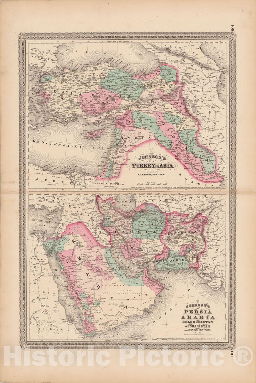 • Historic Map : Family Atlas World, Turkey & Persia & Arabia & Afghanistan 1873 , Vintage Wall Art