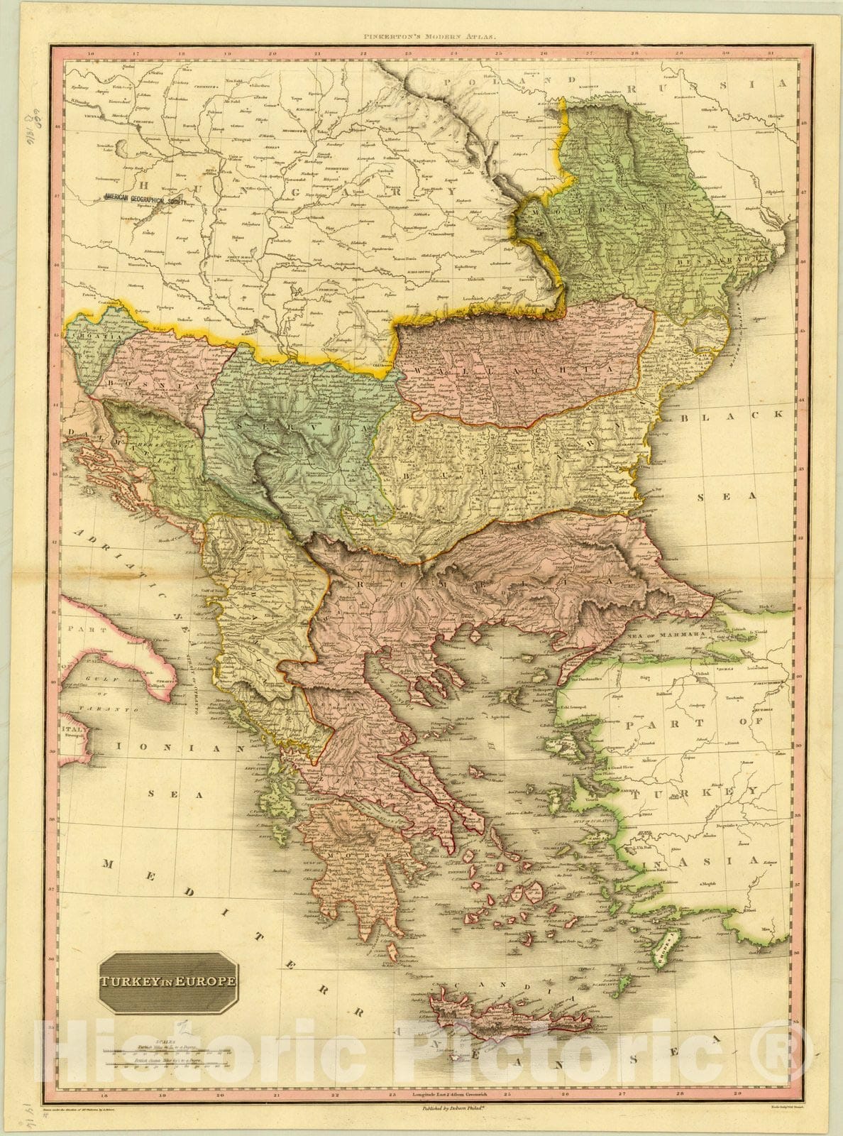 Map : Turkey 1818, Turkey in Europe , Antique Vintage Reproduction