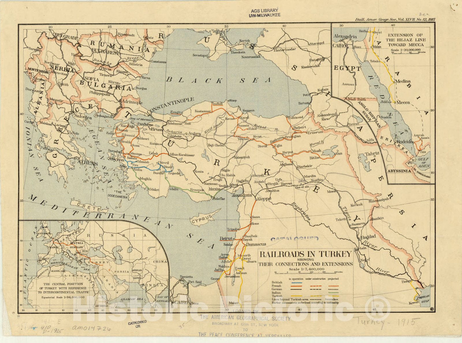 Railroads in Turkey showing their connections and extensions / Bull. Amer. Geogr. Soc. ; Bulletin of the American Geographical Society ; v. 47, no. 12.
