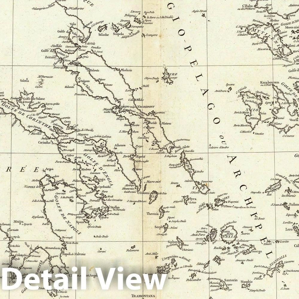 Historic Map : Greece; Turkey, 1756 Les Cotes de la Grece et l'Archipel. , Vintage Wall Art