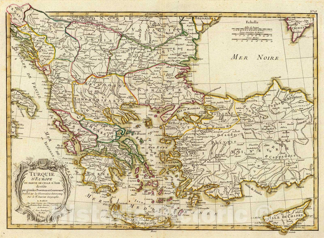 Historic Map : Greece; Turkey, Balkan Peninsula 1780 Turquie. , Vintage Wall Art