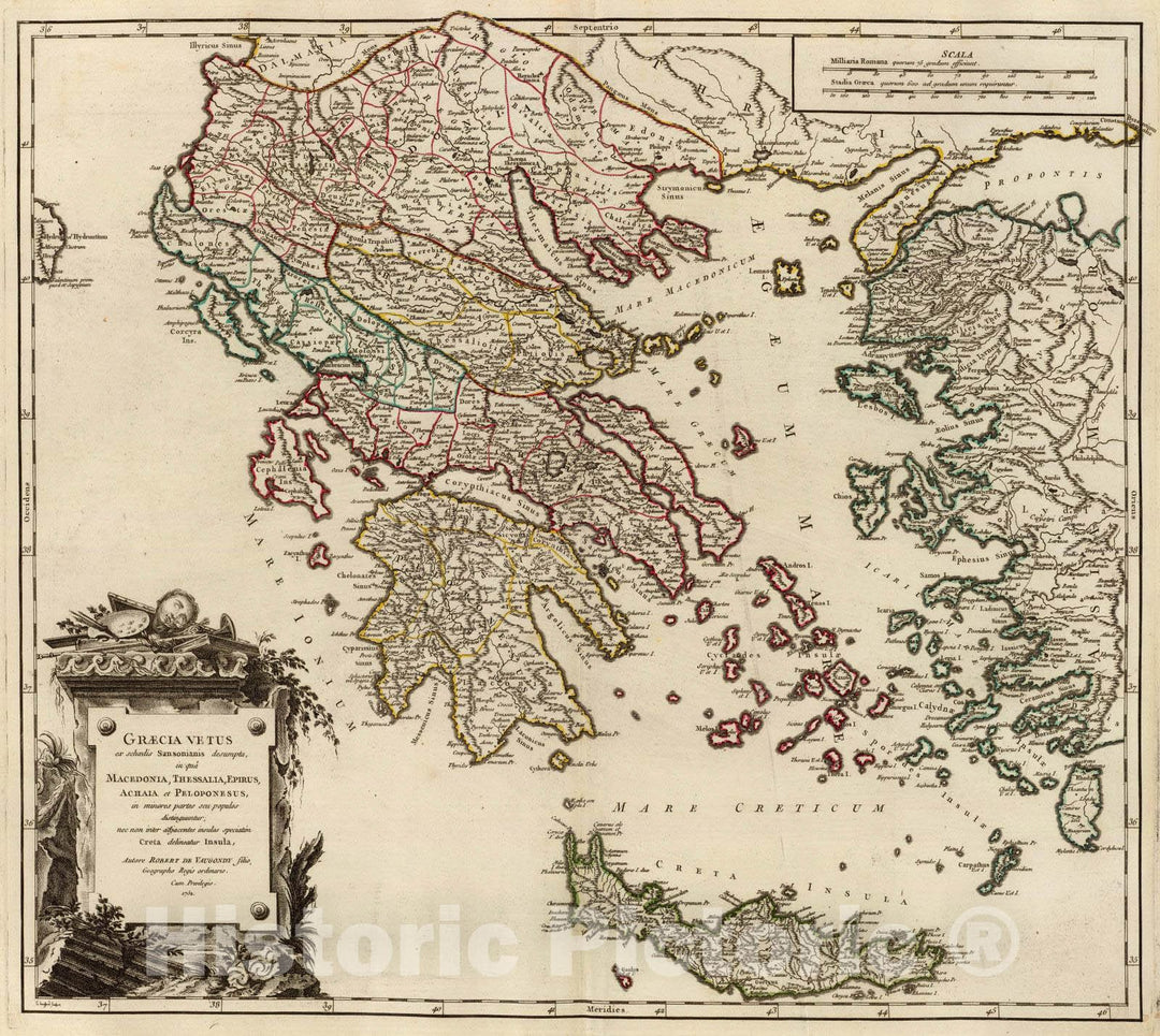 Historic Map : Greece; Turkey, 1751 Graecia Vetus. , Vintage Wall Art