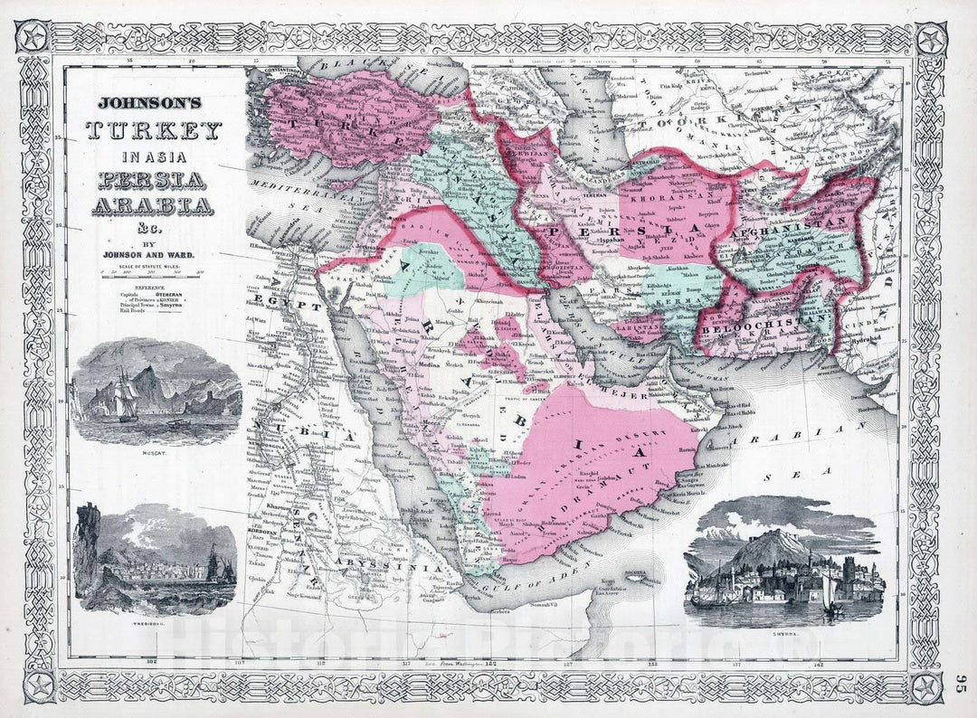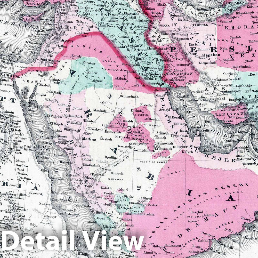 Historic Map : 1865 Turkey, Saudi Arabia, Afghanistan, and Iran. - Vintage Wall Art
