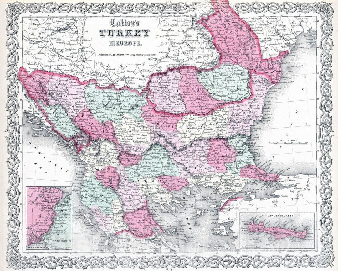 Historic Map : 1865 Turkey in Europe. - Vintage Wall Art