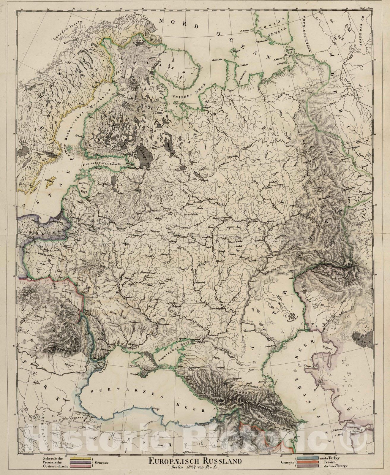 Historic Map : Finland; Russian Federation; Georgia; Ukraine, 1824 Europaeisch Russland. , Vintage Wall Art