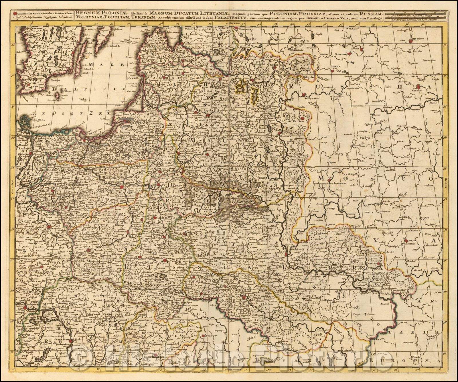 Historic Map - Regnum Poloniae divisum Magnum Lithuaniae, magname Parvam quae Polniam, P :: Poland, the Baltic Regions, etc. extending south to Ukraine, 1690 - Vintage Wall Art