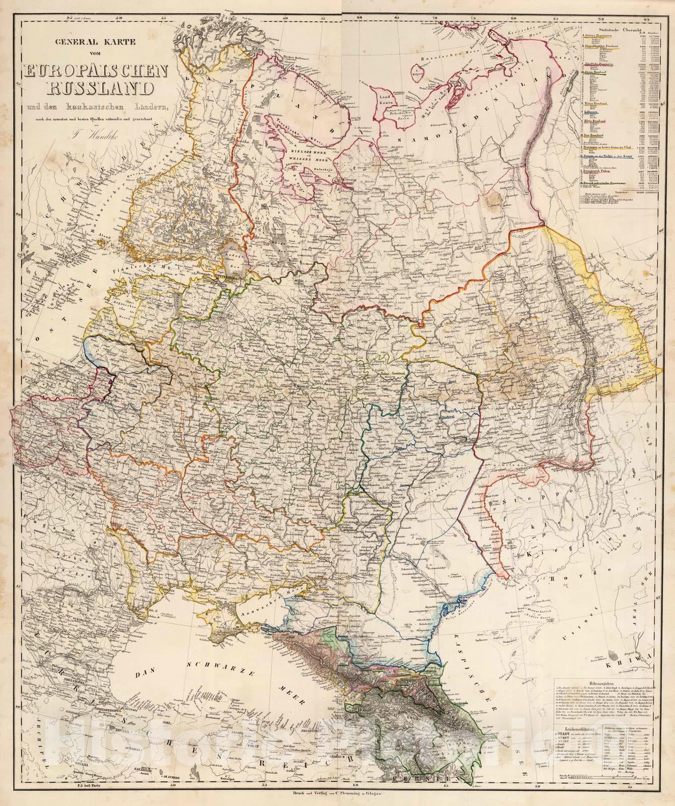 Historic Map : Russia; Ukraine, Caucasus 1855 Composite: Europaischen Russland. , Vintage Wall Art