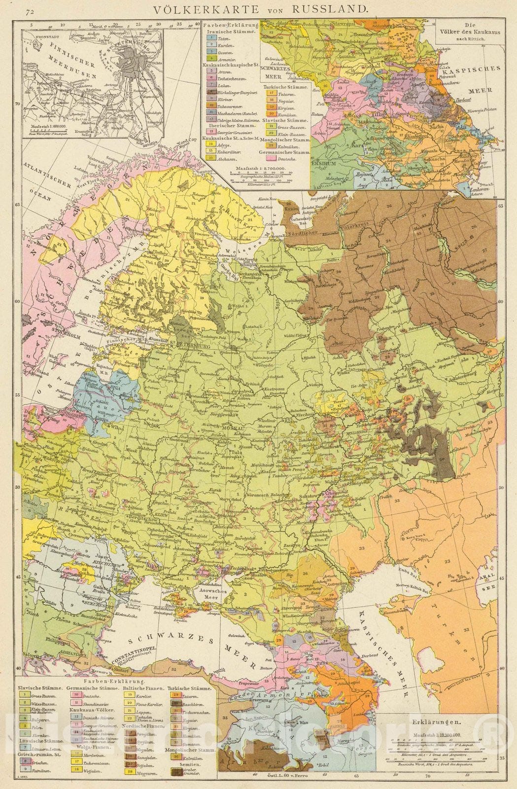 Russia; Ukraine, Caucasus 1881 Volkerkarte von Russland. , Vintage Wall Art