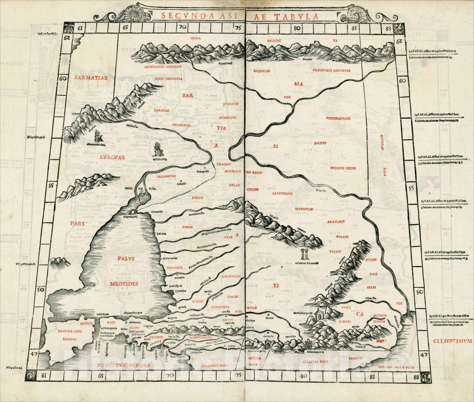 Historic Map : Secunda Asiae Tabula [Ukraine and Russia], 1511, , Vintage Wall Art