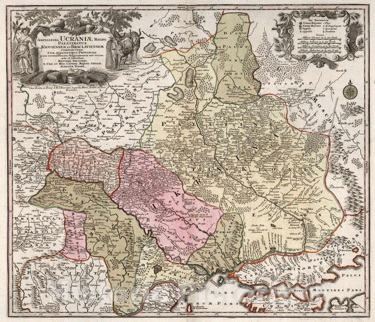 Historic Map : Ukraine, 52. Amplissima Ucraniae Regio, Palatinatus Kioviensum et Braclaviensum, 1740 Atlas , Vintage Wall Art