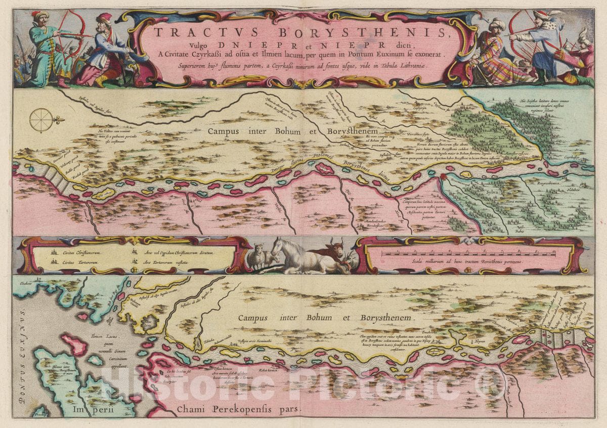 Historic Map : Ukraine, Dniepner River (Ukraine) Tractvs Borysthenis Vulgo Dniepr et Niepr dicti, a civitate Czarkassi ad ostiaa?, 1665 Atlas , Vintage Wall Art