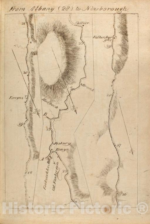 • .Historic 1789 Map - From Albany (28) To Newborough. - Middle Atlantic States - United States - A Survey Of The Roads Of The United States Of America - Vintage Wall Art
