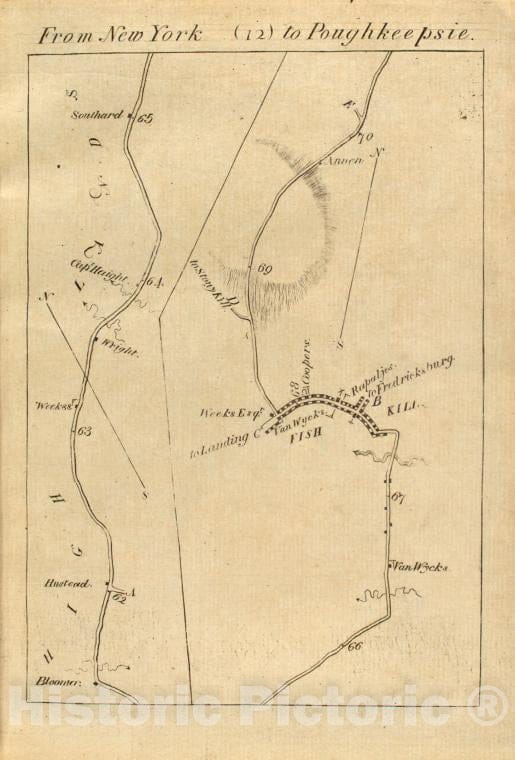 Historic 1789 Map - From New York (12 To Poughkeepsie. - Middle Atlantic States - United States - A Survey Of The Roads Of The United States Of America - Vintage Wall Art