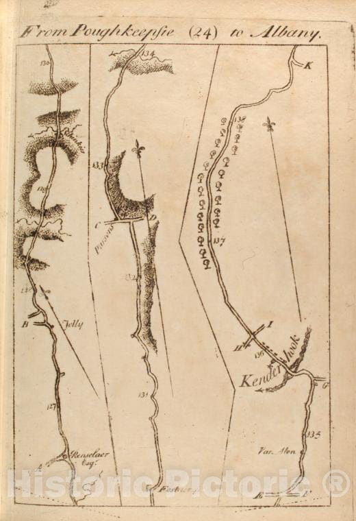 Historic 1789 Map - From Poughkeepsie (24) To Albany - Middle Atlantic States - United States - A Survey Of The Roads Of The United States Of America - Vintage Wall Art