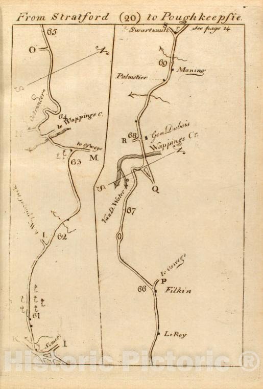 Historic 1789 Map - From Stratford (20) To Poughkeepsie. - Middle Atlantic States - United States - A Survey Of The Roads Of The United States Of America - Vintage Wall Art