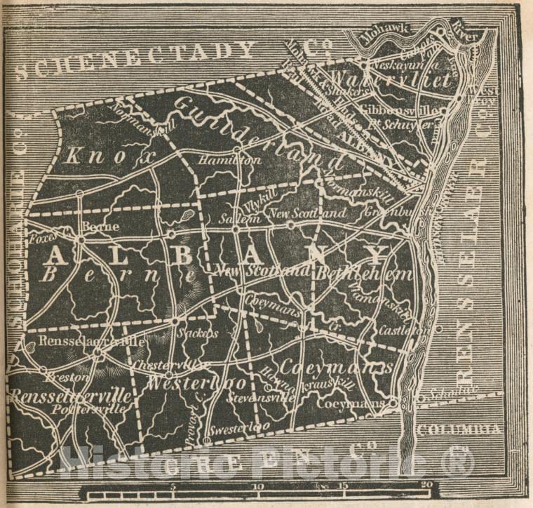 Historic 1838 Map - Albany County. - New York (State) - Albany County (N.Y.) - Atlases Of The United States - New York Atlas. - Vintage Wall Art